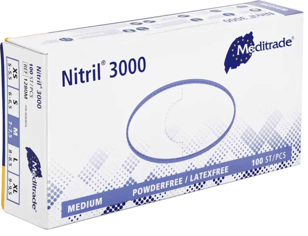 Meditrade Nitril® 3000, weiß - unsteril, puderfrei - Gr. M - 100 Stück